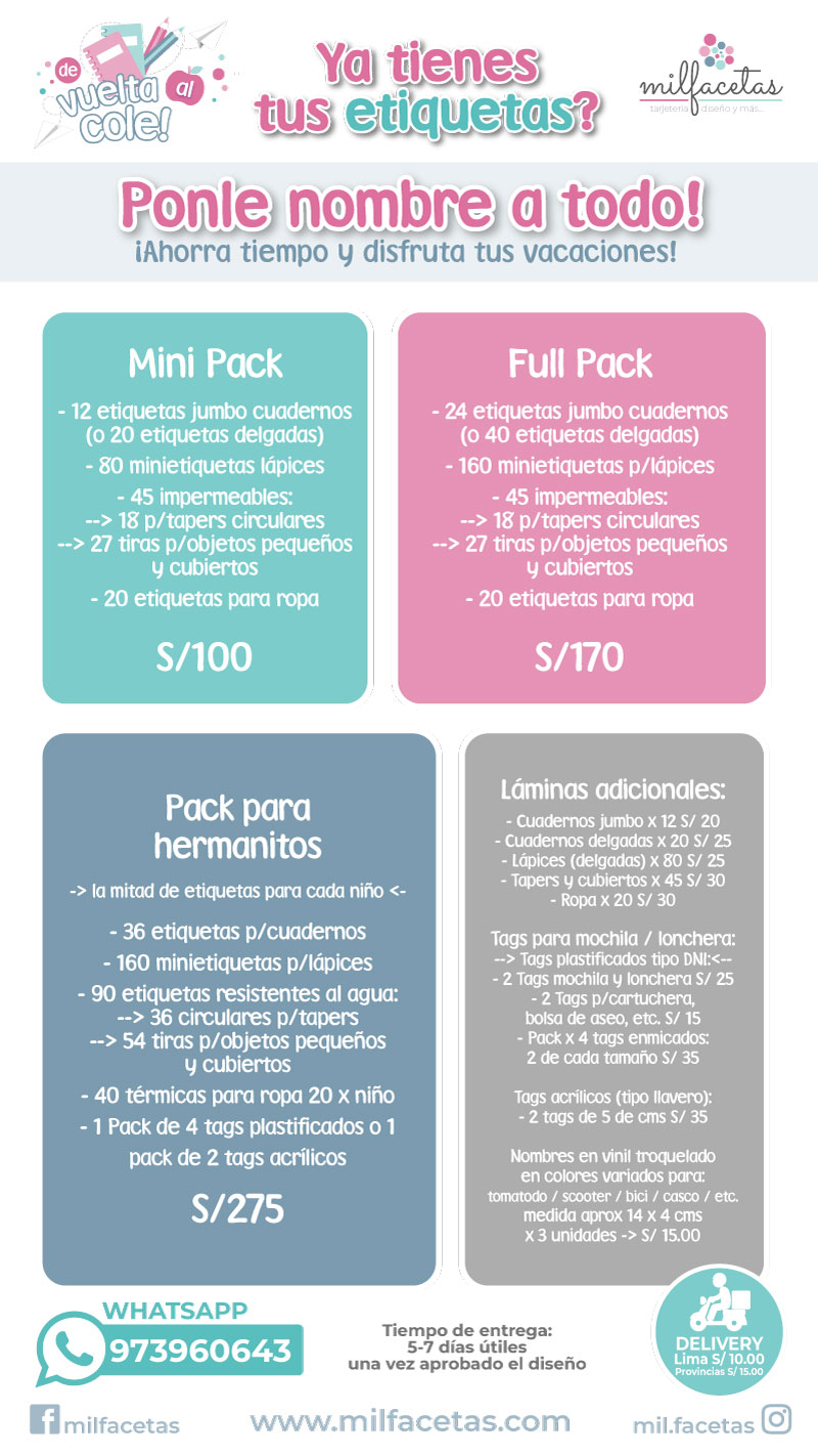 Etiquetas para cuadernos, lápices, ropa, tapers y tags!
