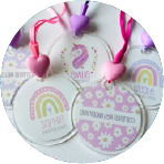 TAGS ACRÍLICOS (tipo llavero): Con aplique de silicona y pita para colgar